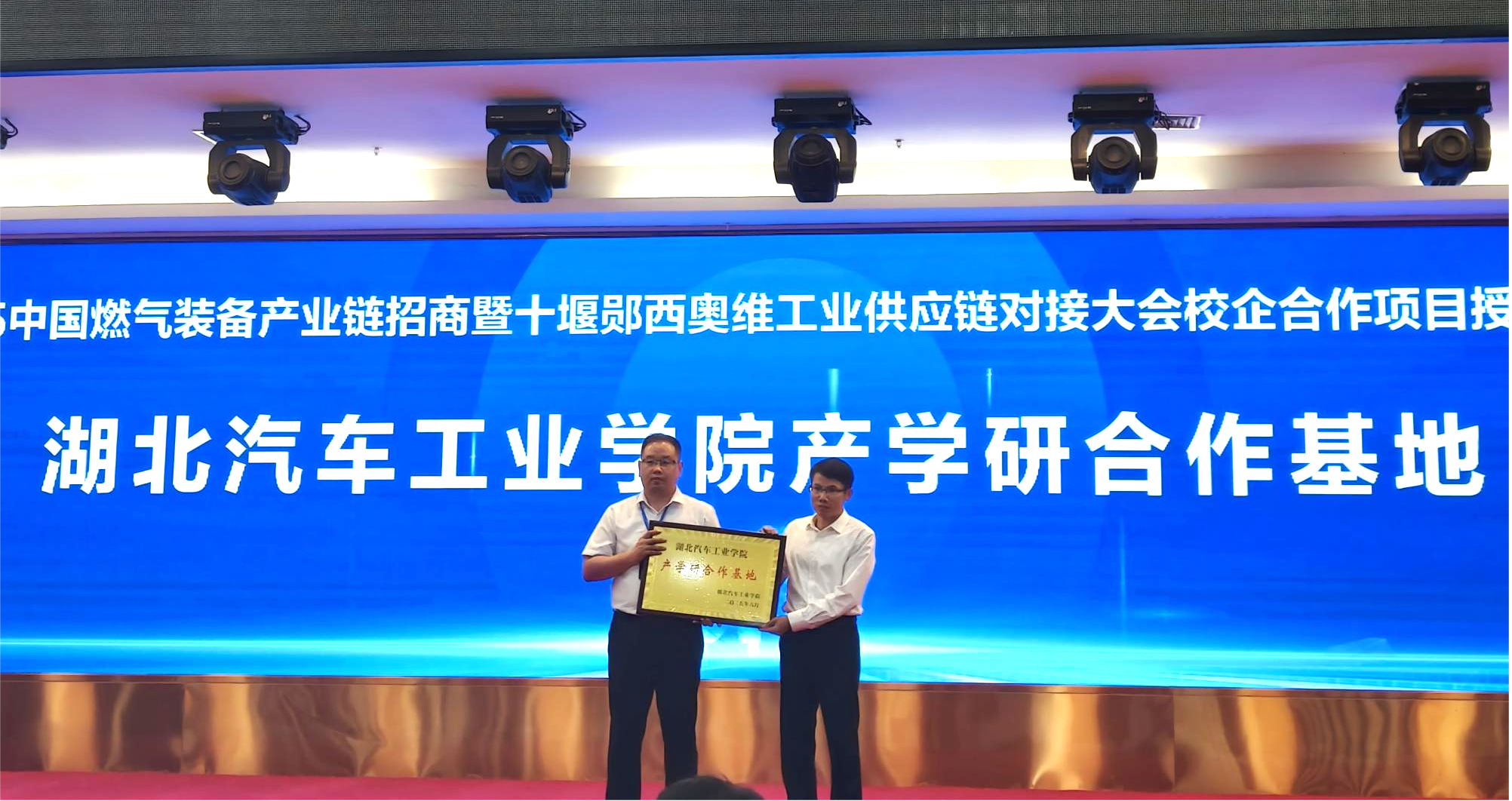 会上,王生怀代表学校与郧西奥维工业有限公司签订产学研合作基地协议。王生怀表示,学校将依托车辆工程、智能装备等学科优势,与奥维工业共建技术研发中心,重点突破燃气装备智能传感、安全监测等核心技术。期待双方在产品技术升级、数字化运维平台开发等领域开展深度合作,推动高校科研成果与企业需求精准对接。